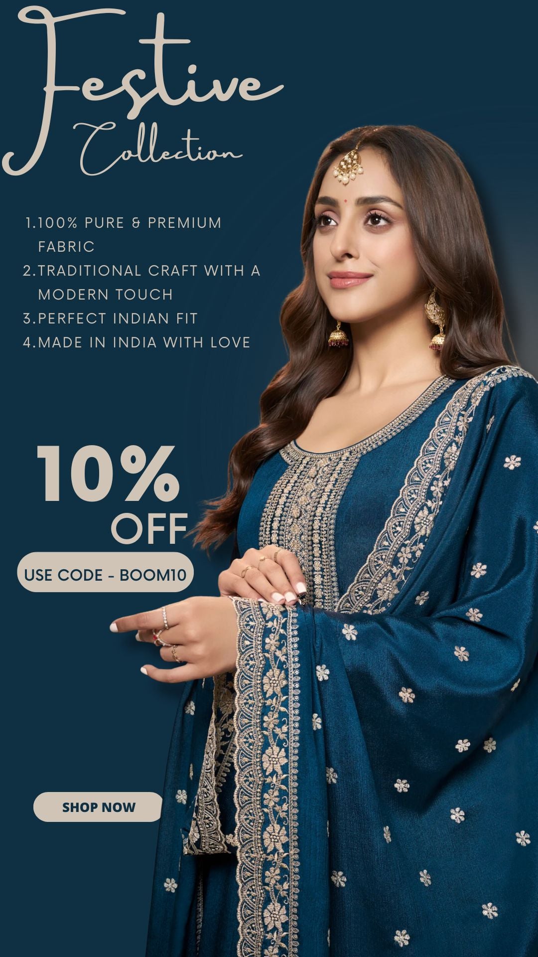 The soothing firozi shade introduces freshness and vibrancy, making it an ideal choice for both daytime and evening wear. Elevate the look with statement earrings, chic sandals, or minimal jewellery for a polished appearance.
